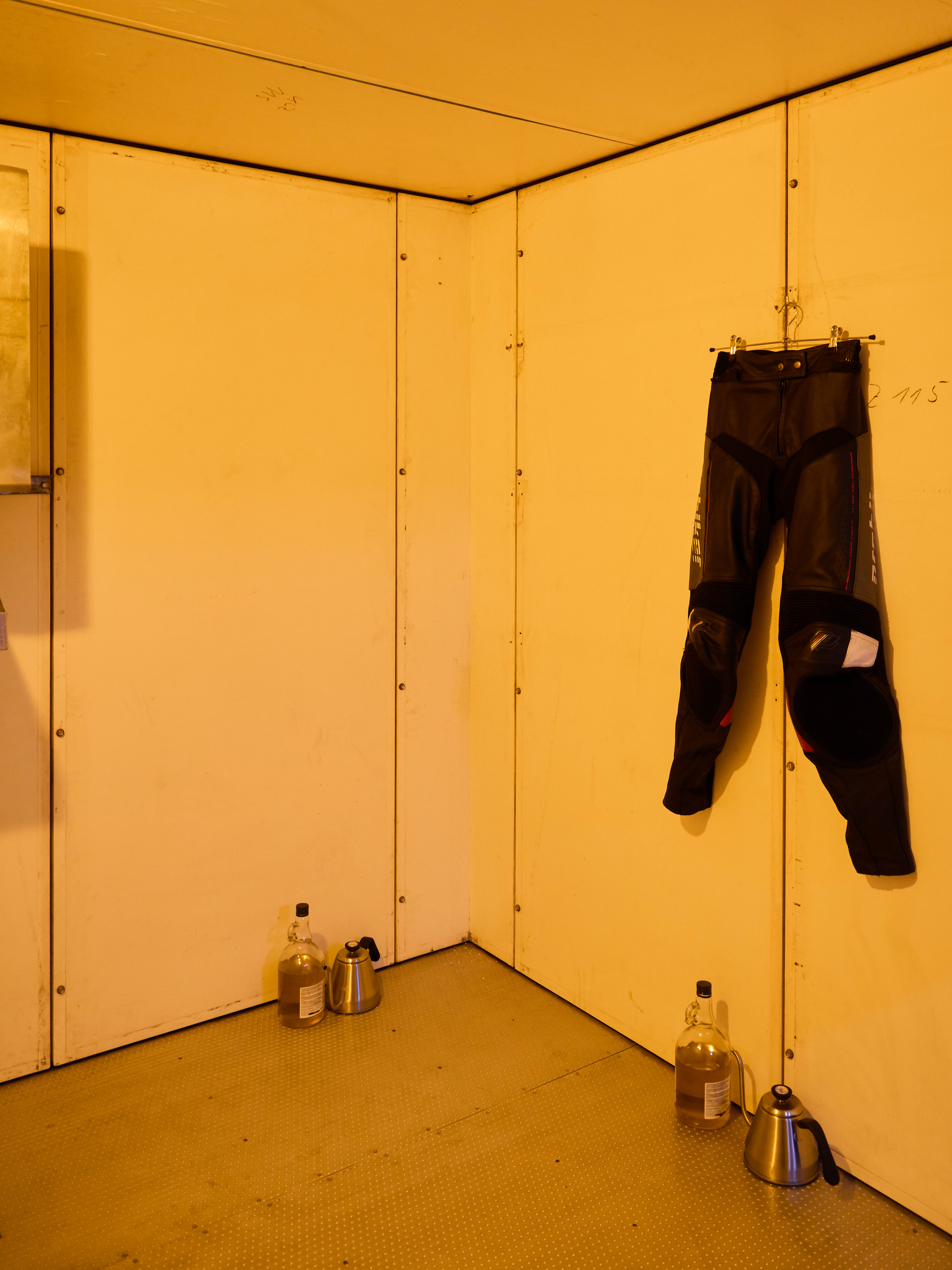 Traces of the Performance (Leather Trousers, Oil, Metal Cans)