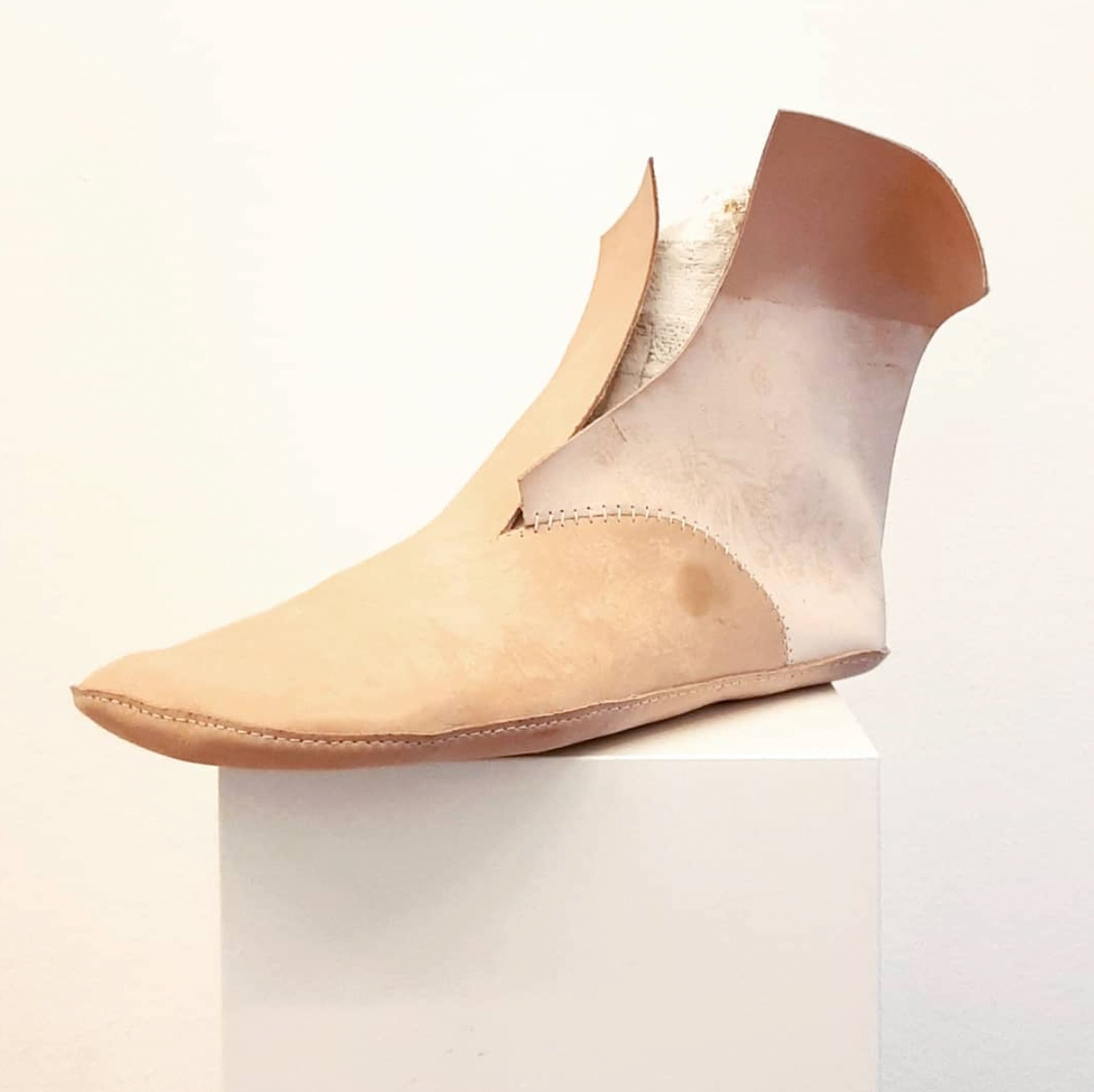 Vegetable tanned leather, nylon twine, beeswax, plaster