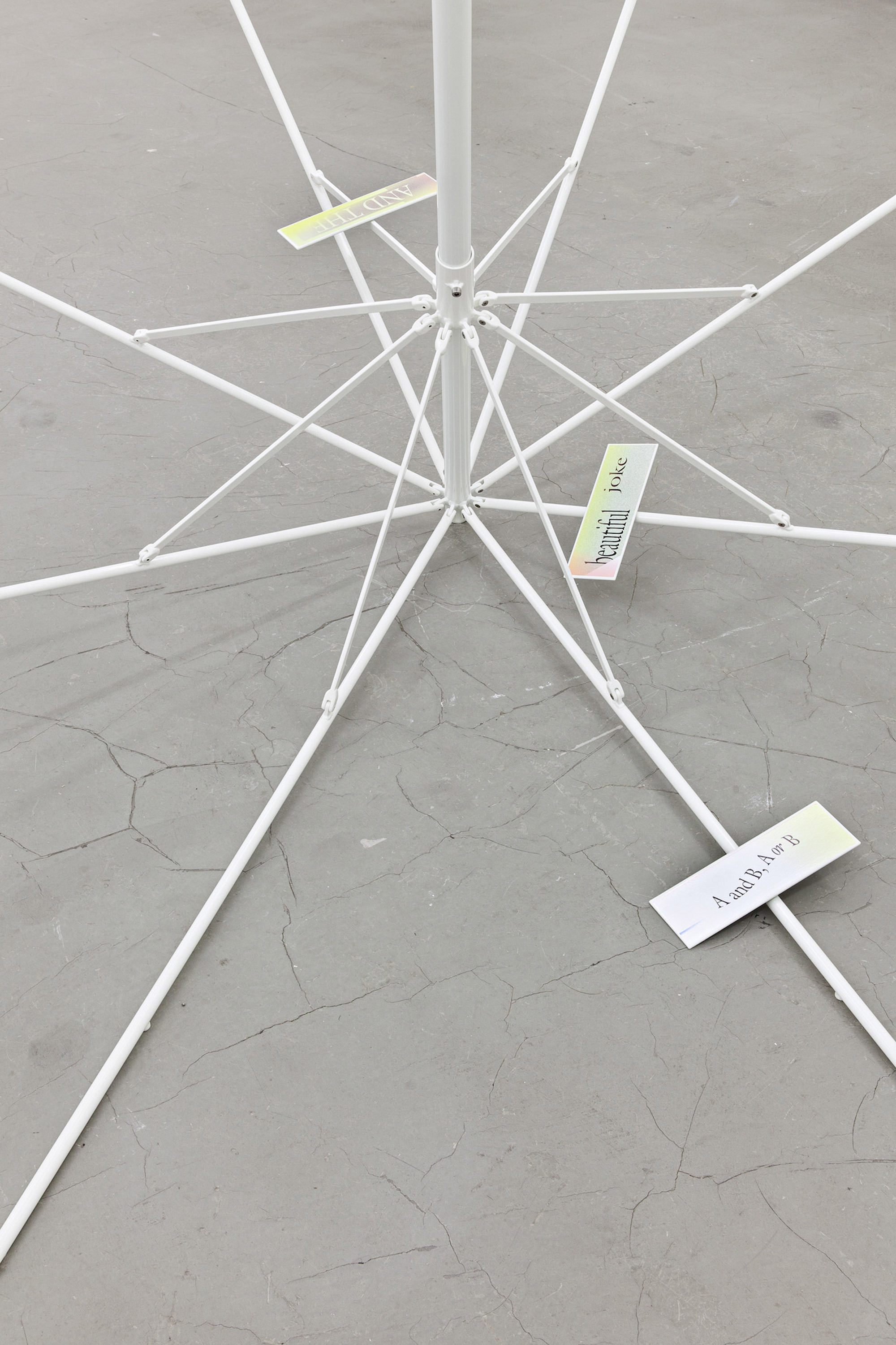 «I have imagined the idea of the umbrella as central to my work. As a banner of emergency and state of exception it is reactive, but stalwart and totally brilliant in its marking of the clash between horizontal (moment, body, poetry etc) and vertical (history, idea, prose etc).» Karl Larsson