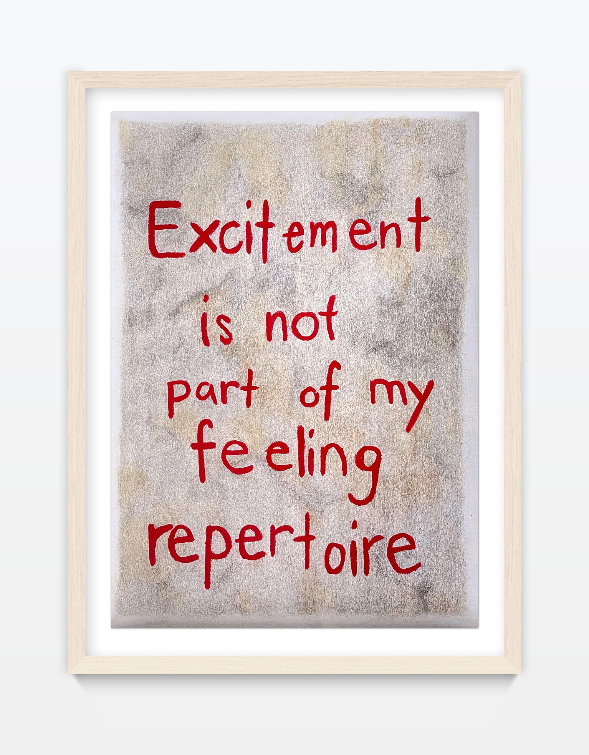 The work was made as part of the moving image project Excitement is not Part of my Feeling Repertoire (2021) in which a Neanderthal, living in the now, is searching desperately for a cave in the hope of finding some rest and connecting with her fellow Neanderthals.