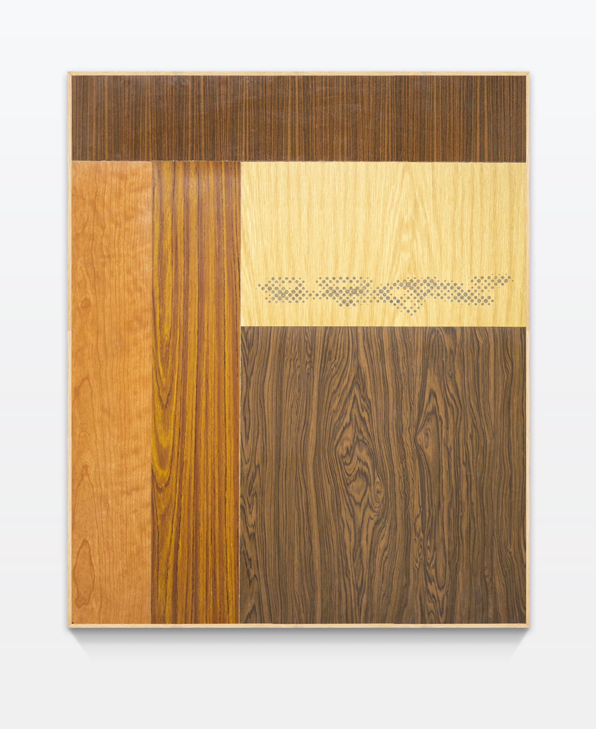 The work was made from original 70s GDR wood laminate, in reference to the house of the artists' grandparents. The wood laminate was sawn, engraved and framed with a wooden shadow gap.