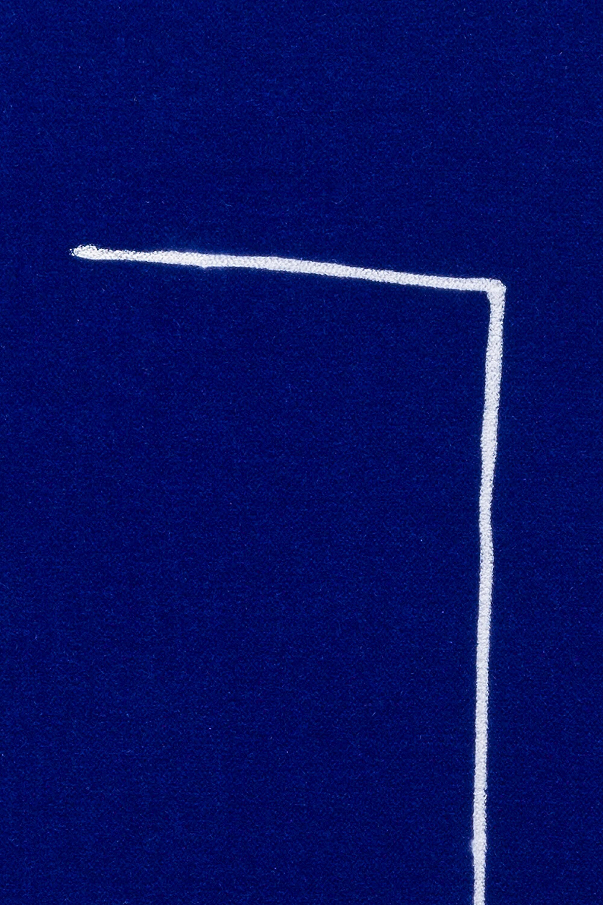 Chlorine bleach on blue velvet, stainless steel frame / 61 x 46 cm / 24.0 x 18.1 in (framed)